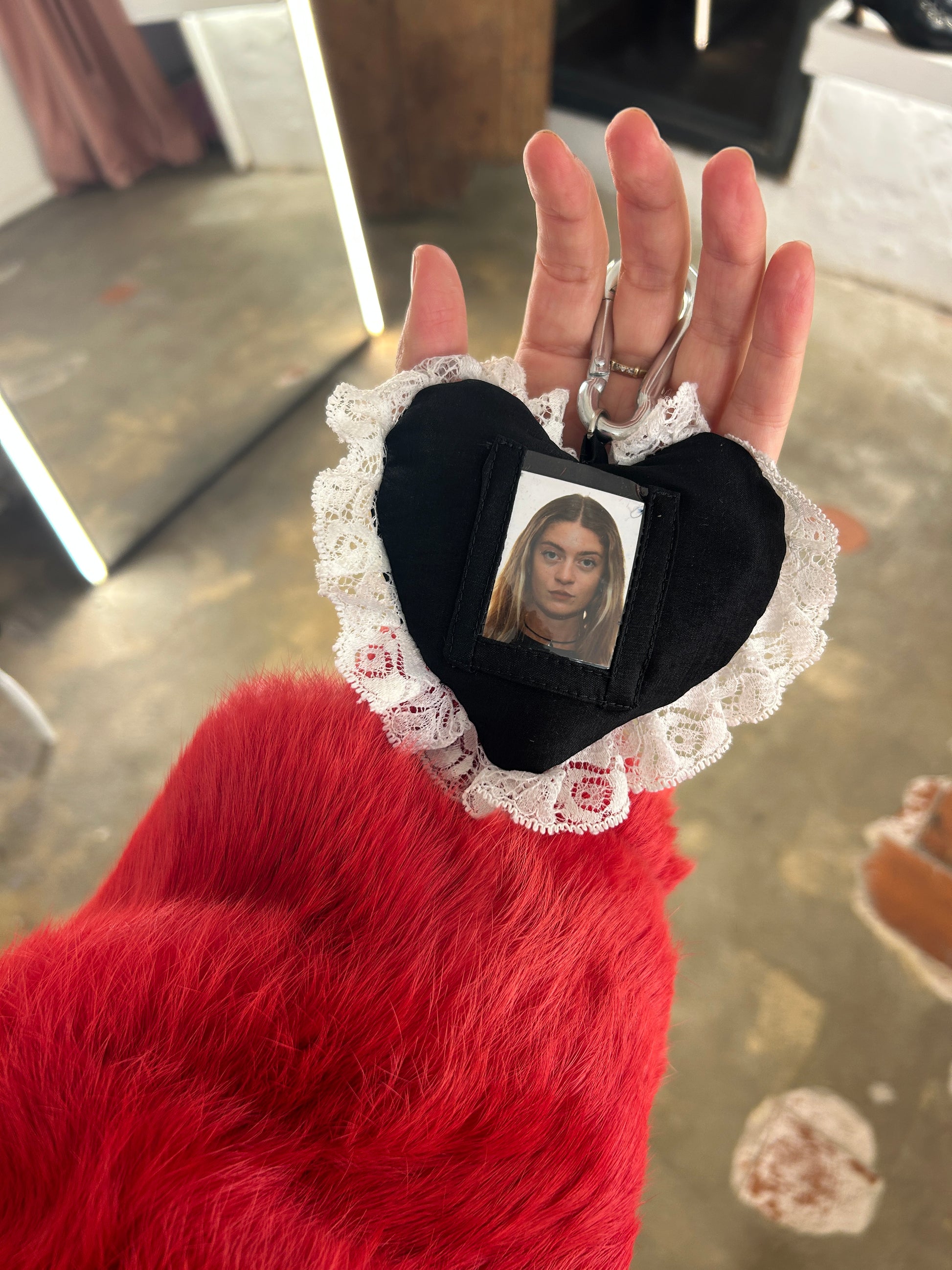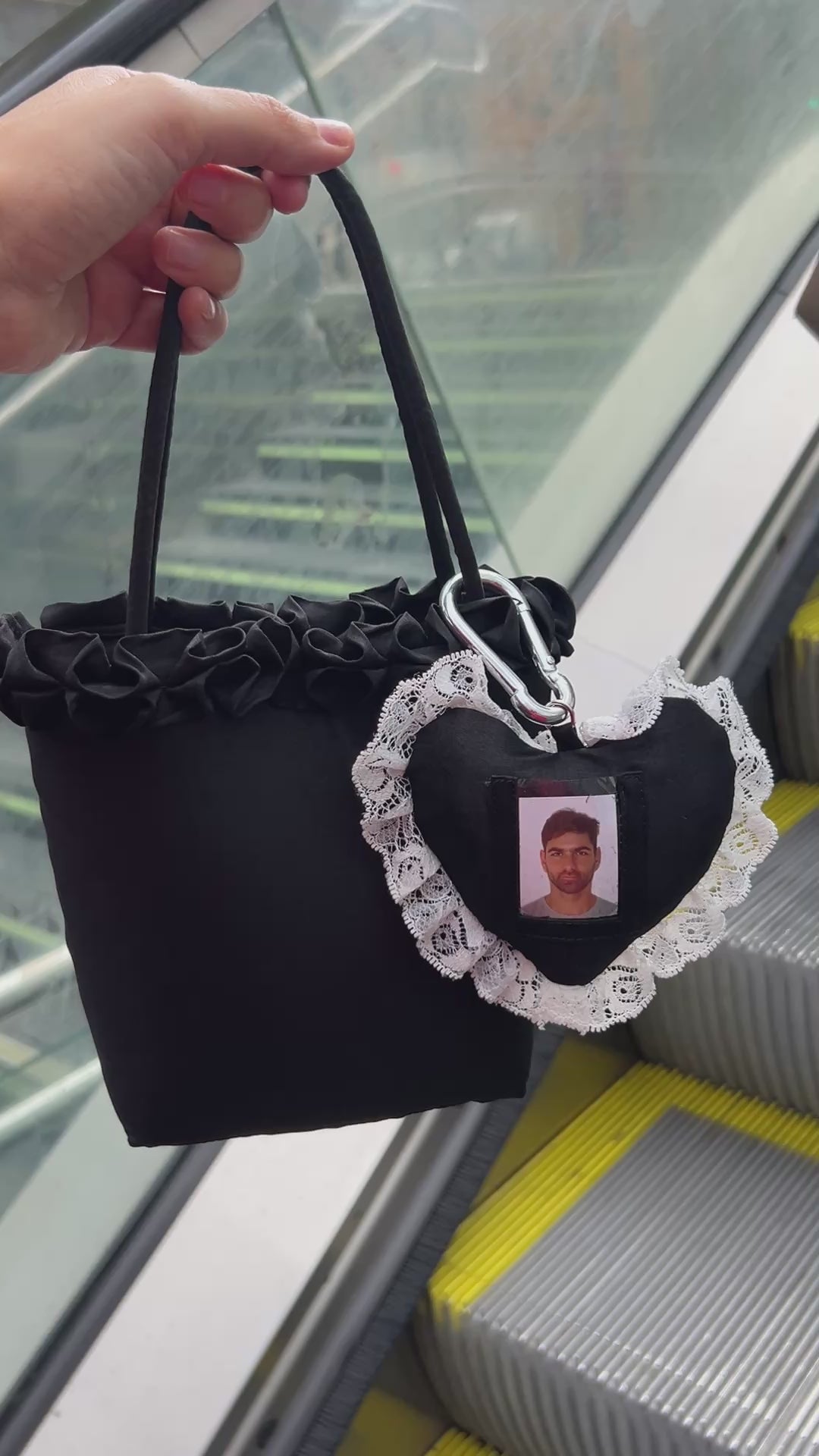 Handmade in Barcelona in the shape of a heart in gauze taffeta, with a section to place a photo, so you can take whoever you want for a walk with you!