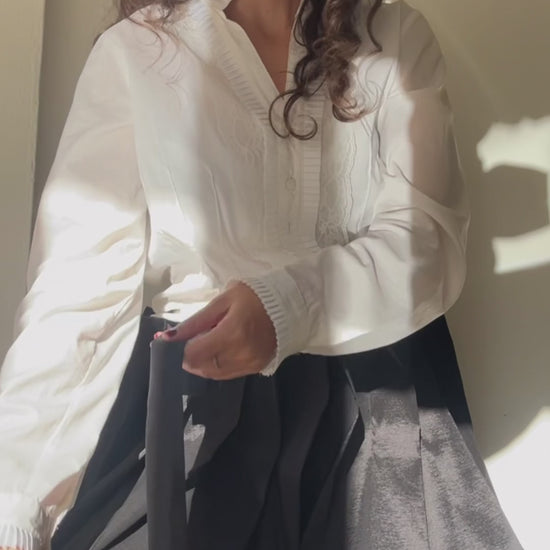 This is a balloon skirt, made in Barcelona in very good-quality slightly stretched tafettan, with a touch of subtle and delicate brightness that makes it even more unique.